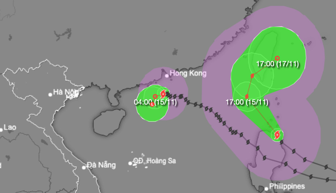 Dự báo đường đi và cường độ của 2 cơn bão. (Nguồn: NCHMF)