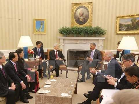 | Tổng Bí thư Nguyễn Phú Trọng hội đàm với Tổng thống Mỹ Obama tại Phòng Bầu dục, Nhà Trắng |