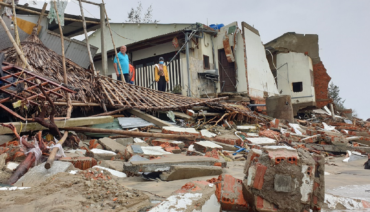 Dãy nhà ven biển Hội An, Quảng Nam bị sóng đánh sập.