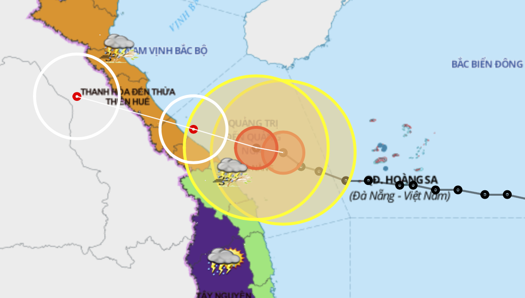 Dự báo trong 12 giờ tới, bão di chuyển theo hướng Tây Tây Bắc, mỗi giờ đi được 15-20km, đi vào đất liền các tỉnh từ Hà Tĩnh đến Thừa Thiên Huế và suy yếu dần thành áp thấp nhiệt đới.