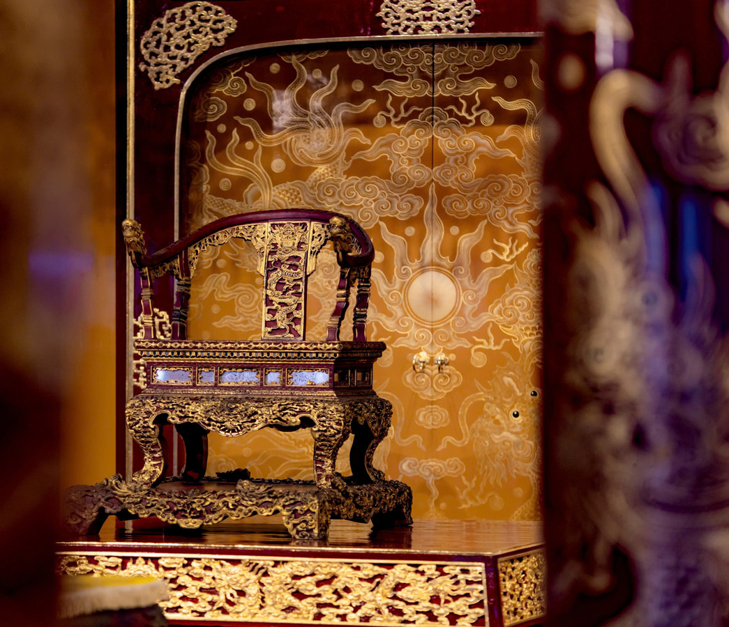 Bảo vật quốc gia ngai vua triều Nguyễn trước khi bị phá hoại. (Ảnh: Lê Hoàng)