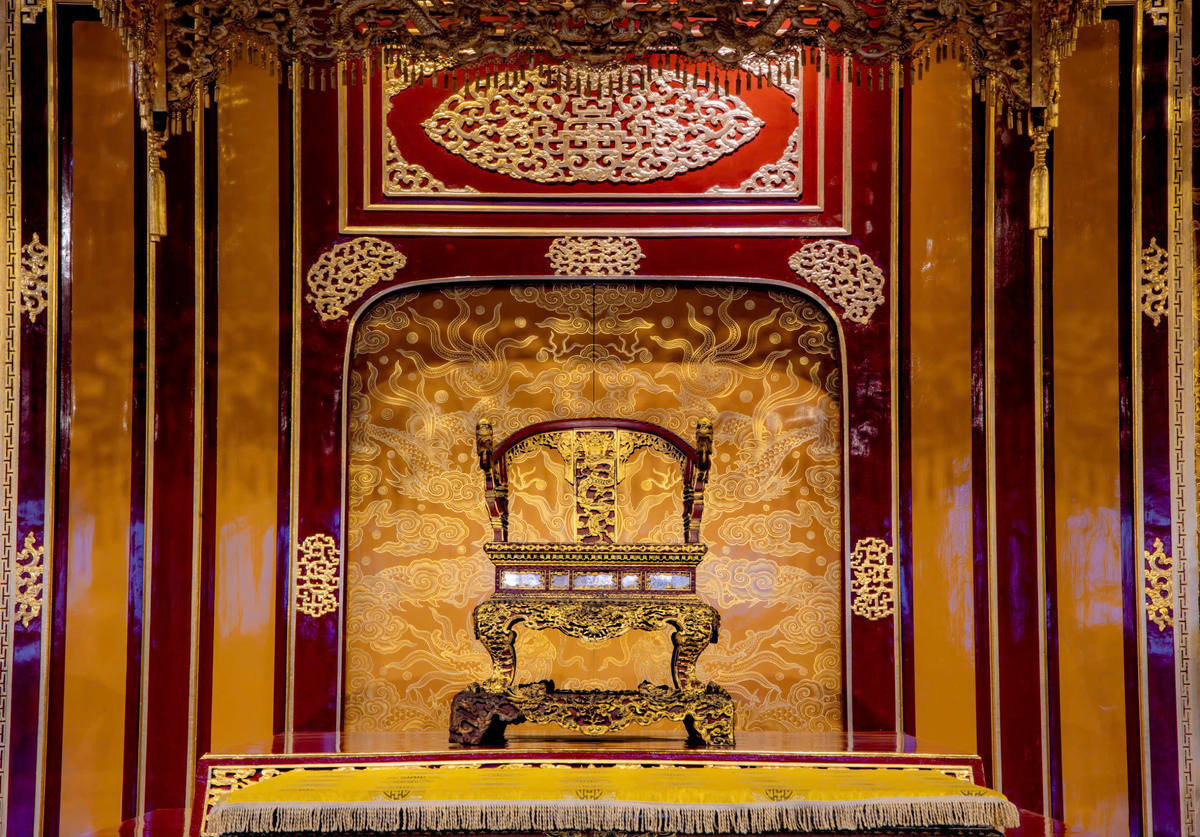 Bảo vật quốc gia ngai vua triều Nguyễn trước khi bị phá hoại. (Ảnh: Lê Hoàng)
