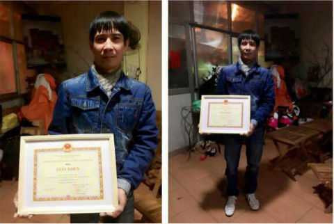 | Hình ảnh Nguyễn Quang Vinh cầm giấy khen được cộng đồng mạng chia sẻ. |