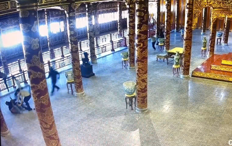 Liên quan đến vụ gã đàn ông phá hoại ngai vàng triều Nguyễn là bảo vật quốc gia, theo thông tin từ lãnh đạo Văn phòng UBND TP Huế, qua trích xuất camera và điều tra bước đầu, thời điểm xảy ra sự việc, hai nhân viên bảo vệ của Trung tâm Bảo tồn Di tích Cố đô Huế (đơn vị quản lý di tích) là Đào Quang Long và Đào Hoàng Vũ đều có mặt ở khu vực Điện Thái Hòa.