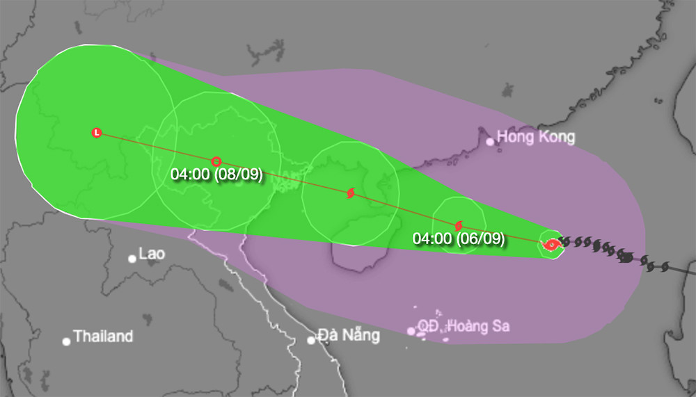 Dự báo đến 4h ngày 8/9, bão số 3 trên khu vực phía Tây Bắc Bộ, di chuyển theo hướng Tây Tây Bắc, mỗi giờ đi được khoảng 20km/h và suy yếu dần thành áp thấp nhiệt đới. Sức gió mạnh nhất vùng gần tâm bão mạnh cấp 6, giật cấp 8. Khu vực chịu ảnh hưởng: Phía Tây Bắc của khu vực Bắc Biển Đông, vịnh Bắc Bộ, cấp độ rủi ro thiên tai: cấp 3.