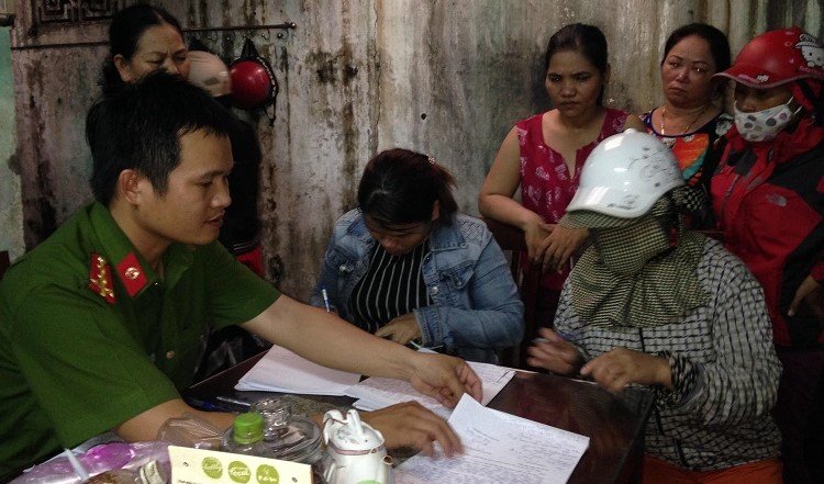 Cơ quan công an đang tiến hành lập biên bản đối với các quý bà tham gia đánh bạc dưới hình thức xì lát. (Ảnh: Công an cung cấp)