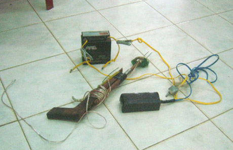Trong lúc này, Chơn mở công tắc nguồn của xung điện, cầm cán cây chĩa chích phần 2 đầu nhọn vào hông phải của ông Hải. Nạn nhân bị điện giật ngã xuống đất. Thấy vậy, Chơn kêu Trầm lấy xe máy trốn thoát. Tuy nhiên, Trầm không đồng ý mà cùng gia đình đưa nạn nhân đi cấp cứu, nhưng ông Hải không qua khỏi.