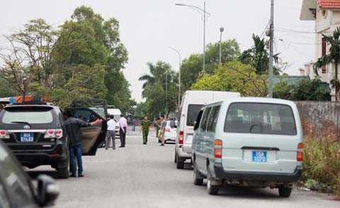 | Lực lượng chức năng phong tỏa con đường dẫn vào khu biệt thự ở phường Anh Dũng (Dương Kinh, Hải Phòng) để tiến hành bắt giữ các nghi can phạm tội - Ảnh: Tiến Thắng/TTO |