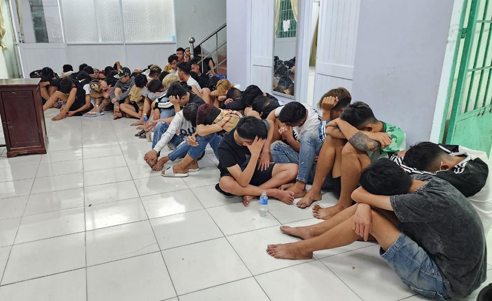 46 thanh thiếu niên được đưa về trụ sở Công an. (Ảnh: Anh Vũ)