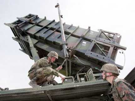 | Những người lính đang kiểm tra giàn tên lửa di động Patriot. |