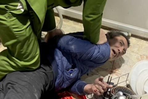 Công an khống chế gã anh vợ ngáo đá sát hại NSƯT Vũ Mạnh Dũng.