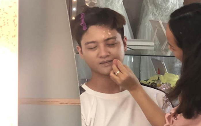 Chỉ qua vài bước trang điểm, thanh niên đã biến thành một mỹ nhân đầy nữ tính, mềm mại và quyến rũ.