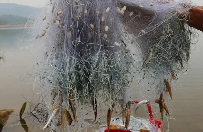 Khoảng 15h hàng ngày, anh Phương ở xã Tam Đại, huyện Phú Ninh rời nhà tới hồ thủy lợi Phú Ninh. Cho 20 tấm lưới loại mắt nhỏ lên chiếc thuyền nan, anh Phương ngồi cuối mũi thuyền, một chân thả xuống nước tạo thành mái chèo đẩy thuyền tới những nơi nước sâu 1-5 m, cách bờ 10-50 m, phía dưới có nhiều bãi đá để thả lưới. Mỗi tấm lưới dài 30 m được kết lại, tạo thành đường dài. Sau 30 phút thả hết lưới, anh lên bờ trở về nhà ăn cơm và nghỉ ngơi.