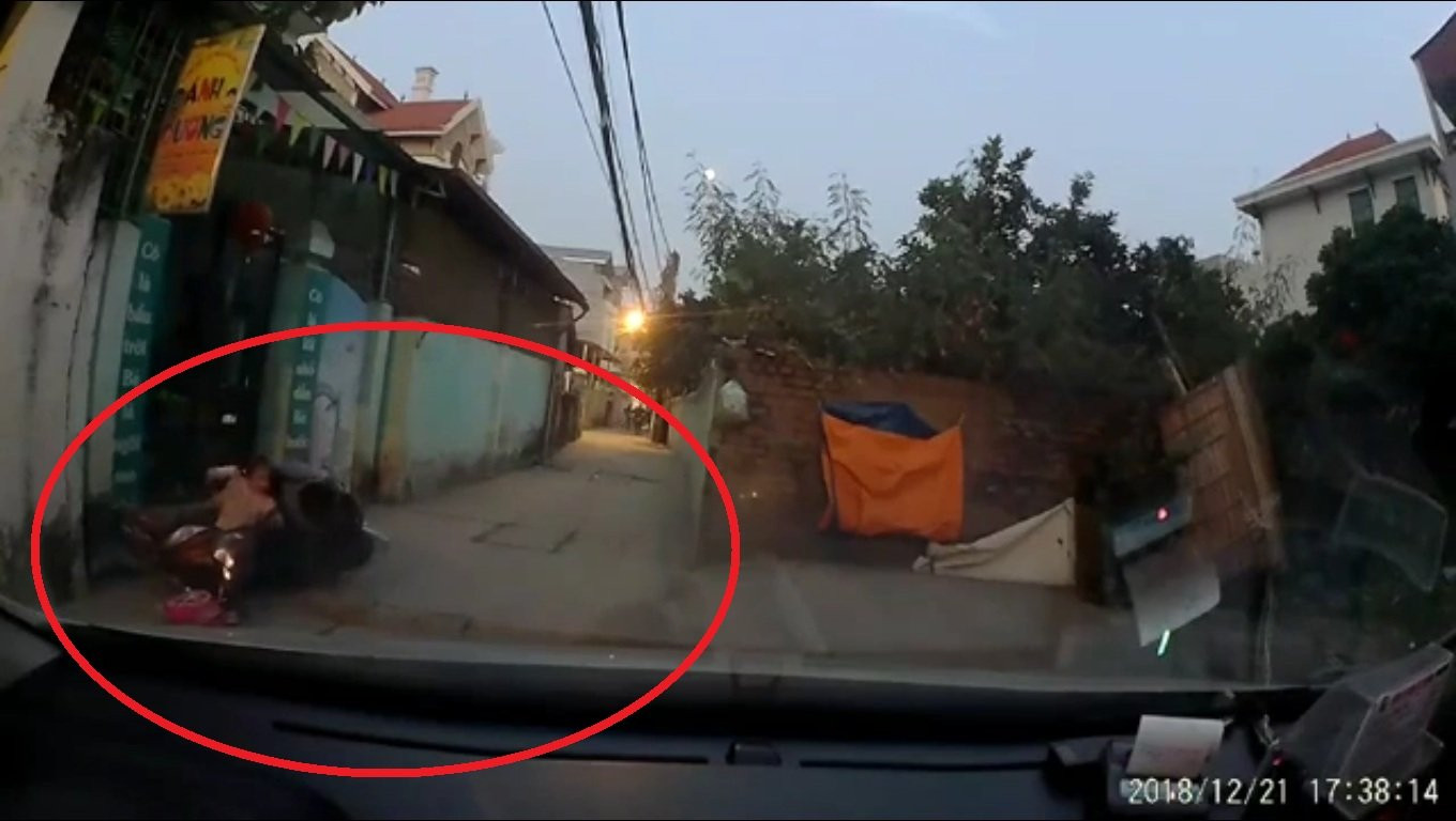 Hình ảnh ghi lại được cho thấy, một người phụ nữ đèo theo trẻ nhỏ ngồi trên xe máy, dừng trước cửa một trường mầm non. Trong lúc người phụ nữ đang loay hoay cất đồ thì bé gái đứng phía trước bất ngờ kéo tay ga khiến chiếc xe lao thẳng vào tường.