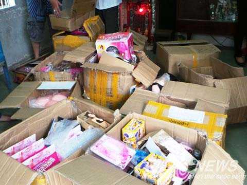 Kiểm tra căn nhà nơi vợ chồng Yan Jian Feng – Lư Thục Hỷ đang cư ngụ ở huyện Hóc Môn, công an thu giữ hàng chục thùng chứa các loại thuốc kích dục, đồ chơi sextoy.