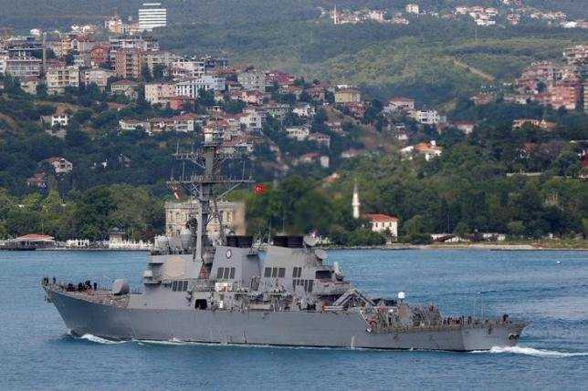 Tàu khu trục mang tên lửa dẫn đường USS Porter của Mỹ lúc đi ngang qua thành phố Istanbul, Thổ Nhĩ Kỳ ngày 6-6. Ảnh: Reuters
