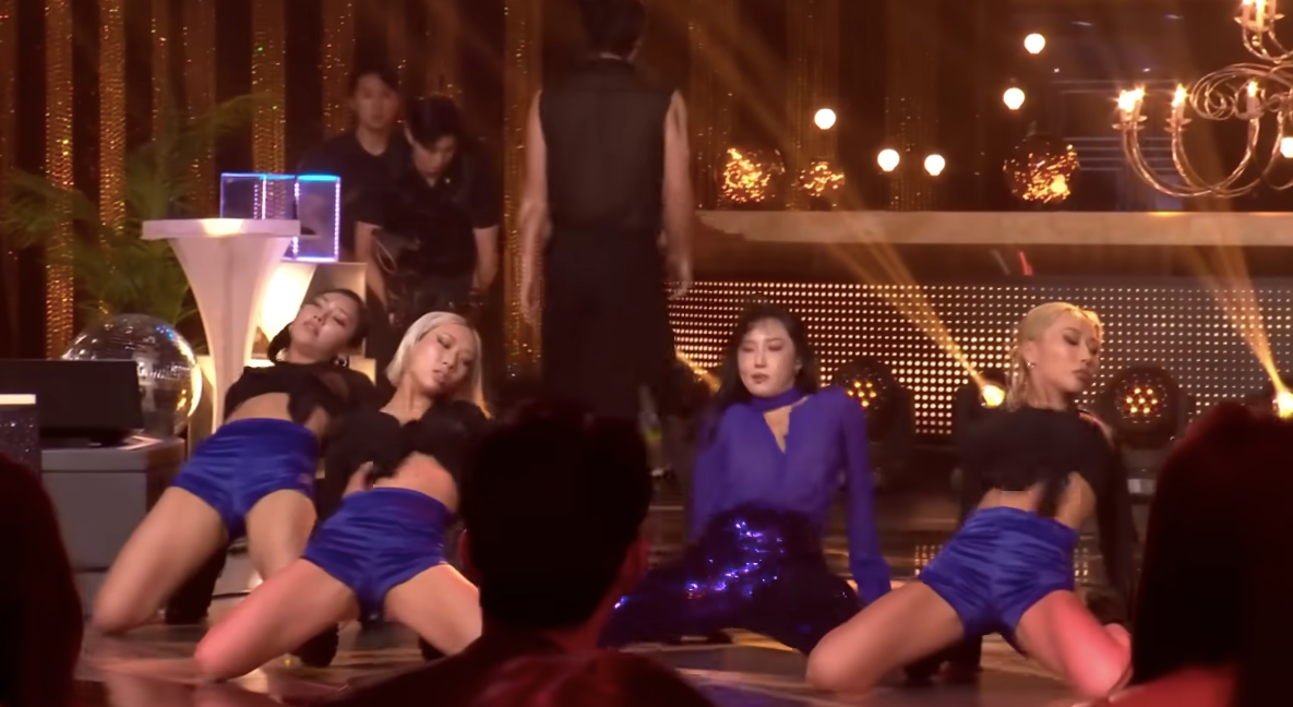 Trong đó, đáng chú ý là phần biểu diễn của Hwasa, nữ ca sĩ thuộc nhóm nhạc Mamamoo. Cô thể hiện hai bản hit Maria và Twit. Trên sân khấu, cô cùng dàn vũ công thực hiện những động tác táo bạo, lắc hông theo nhịp điệu của bản nhạc.
