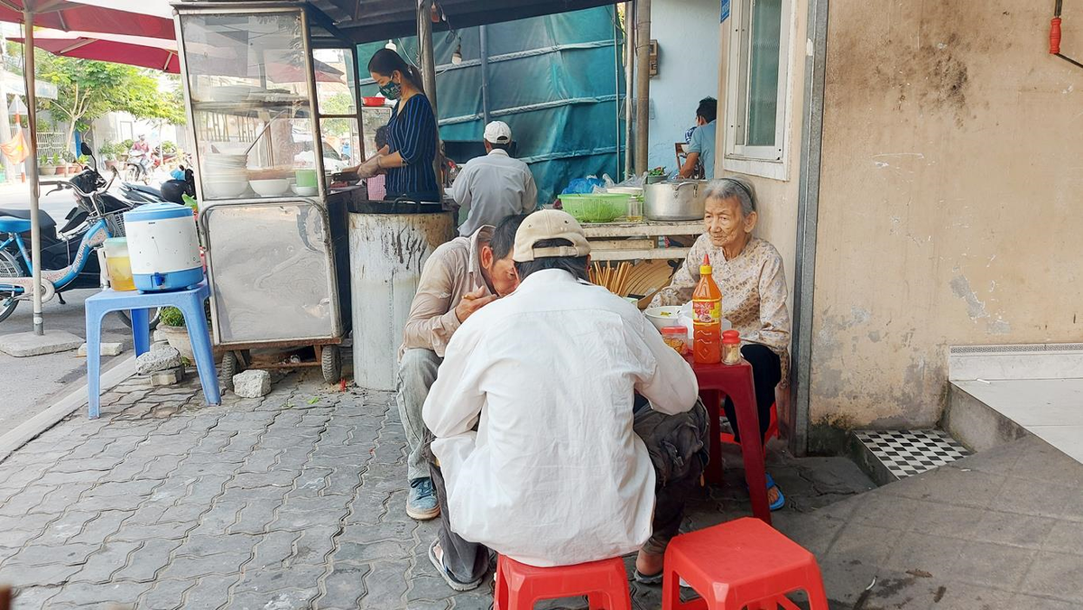 Đến 10h30, quán bún bò, bánh bèo trên đường An Cư 3 và An Nhơn 7 vẫn bán hàng, khá nhiều khách vào ăn uống.