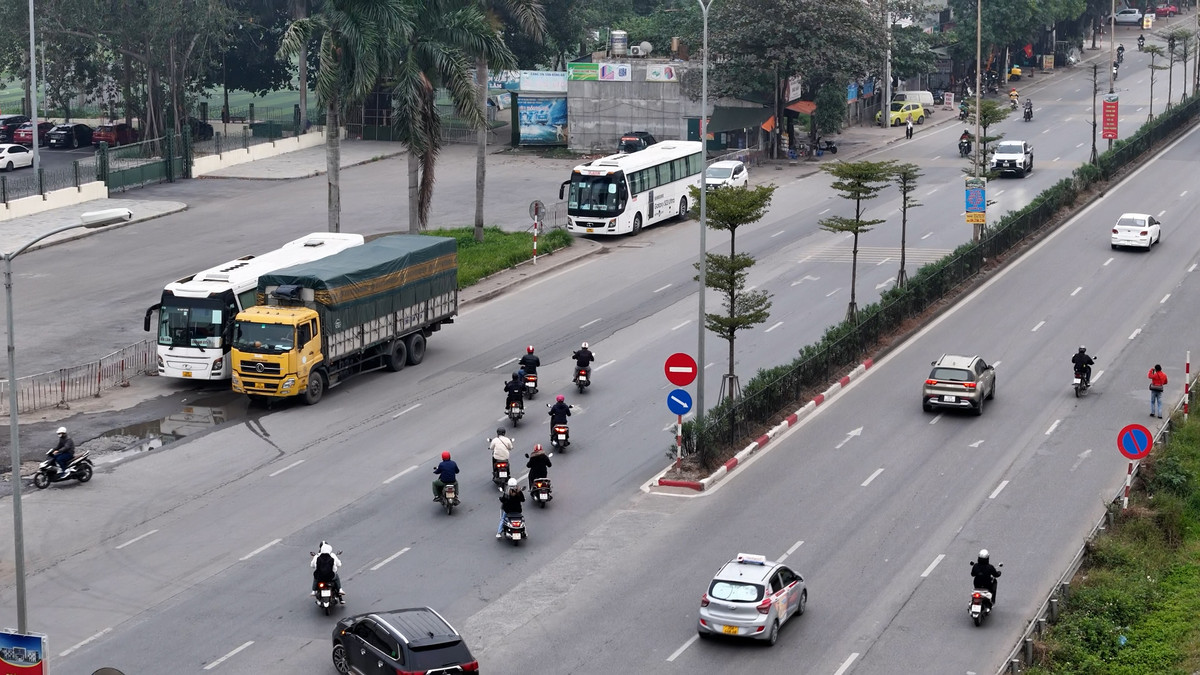Tại nút giao Quốc lộ 5, khu vực trước Nhà thi đấu Gia Lâm (Hà Nội) rất nhiều người tham gia giao thông bất chấp biển cấm vô tư đi ngược chiều.