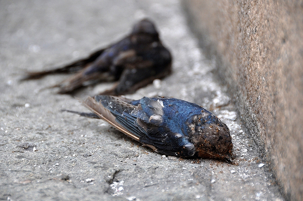 Ảnh này được chụp ở một ngôi chùa tại quận 3, TP.HCM trong dịp thực hiện nghi lễ phóng sinh. Hai chú chim nằm chết trên đất, đầu bị kiến lửa bu kín. (Ảnh: VnExpress).