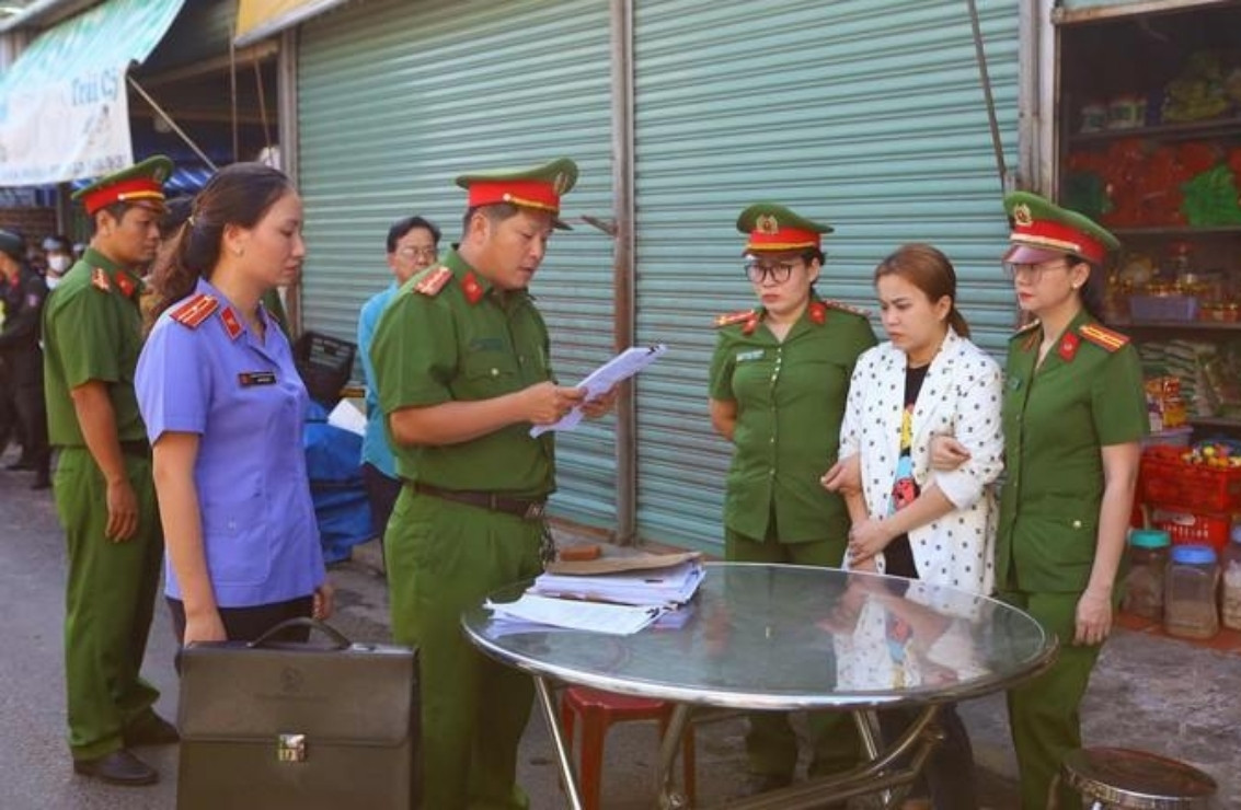 Đọc lệnh bắt tạm giam đối với chủ hụi Loan Chi. (Ảnh: DT)