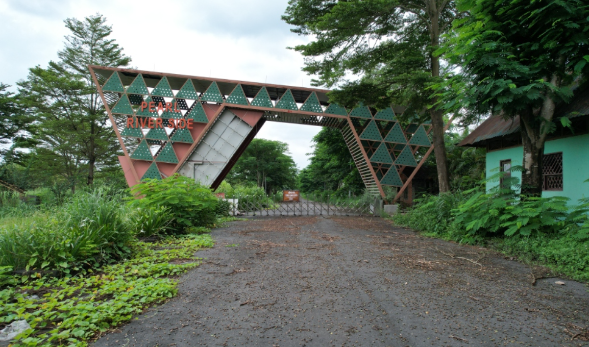 Dự án Khu dân cư mật độ thấp và du lịch sinh thái thác Giang Điền hiện bị bỏ hoang, các công trình phụ trợ xuống cấp.