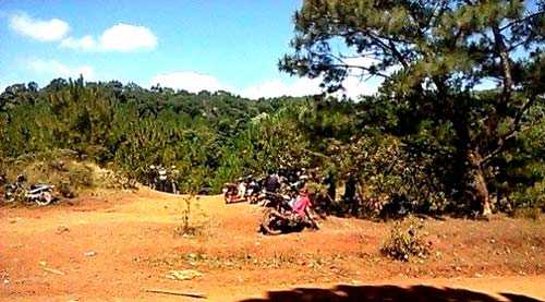| Khu vực rừng giáp biên giới nơi phát hiện thi thể chị Thắm và chiếc xe |