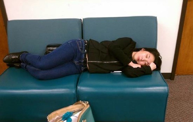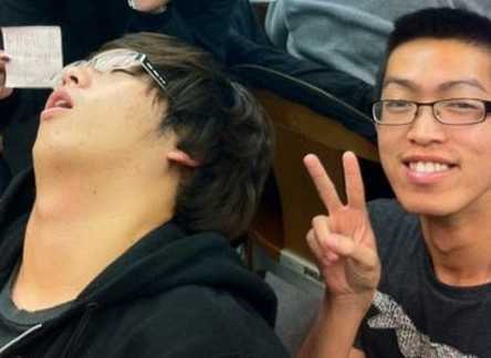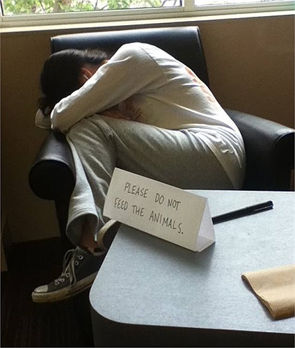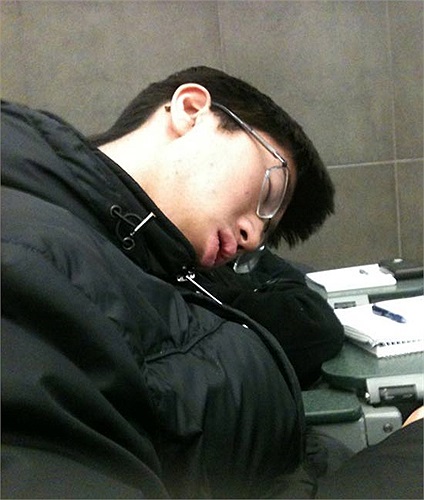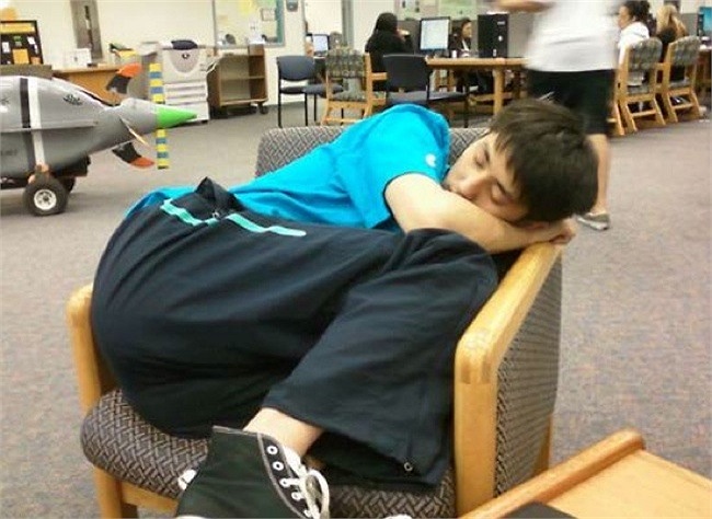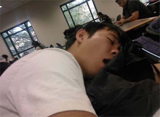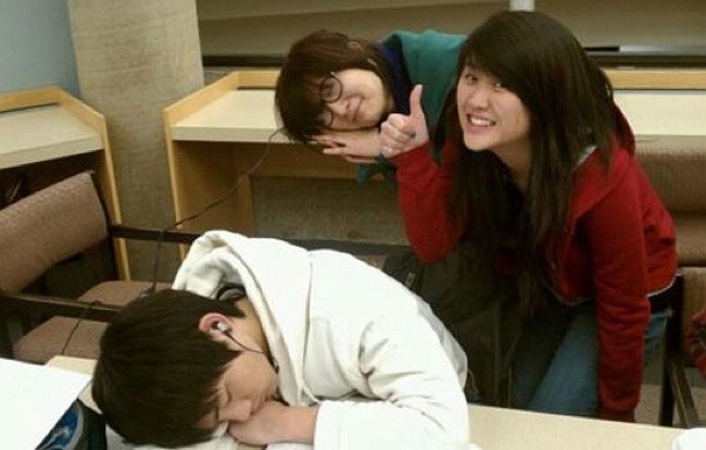 Sinh viên với những tư thế ngủ hài hước, trong khi bạn bè tha hồ pose hình trêu chọc. Những hình ảnh này được chia sẻ trên website chuyên về ngủ gật. (Ảnh:Tiin)