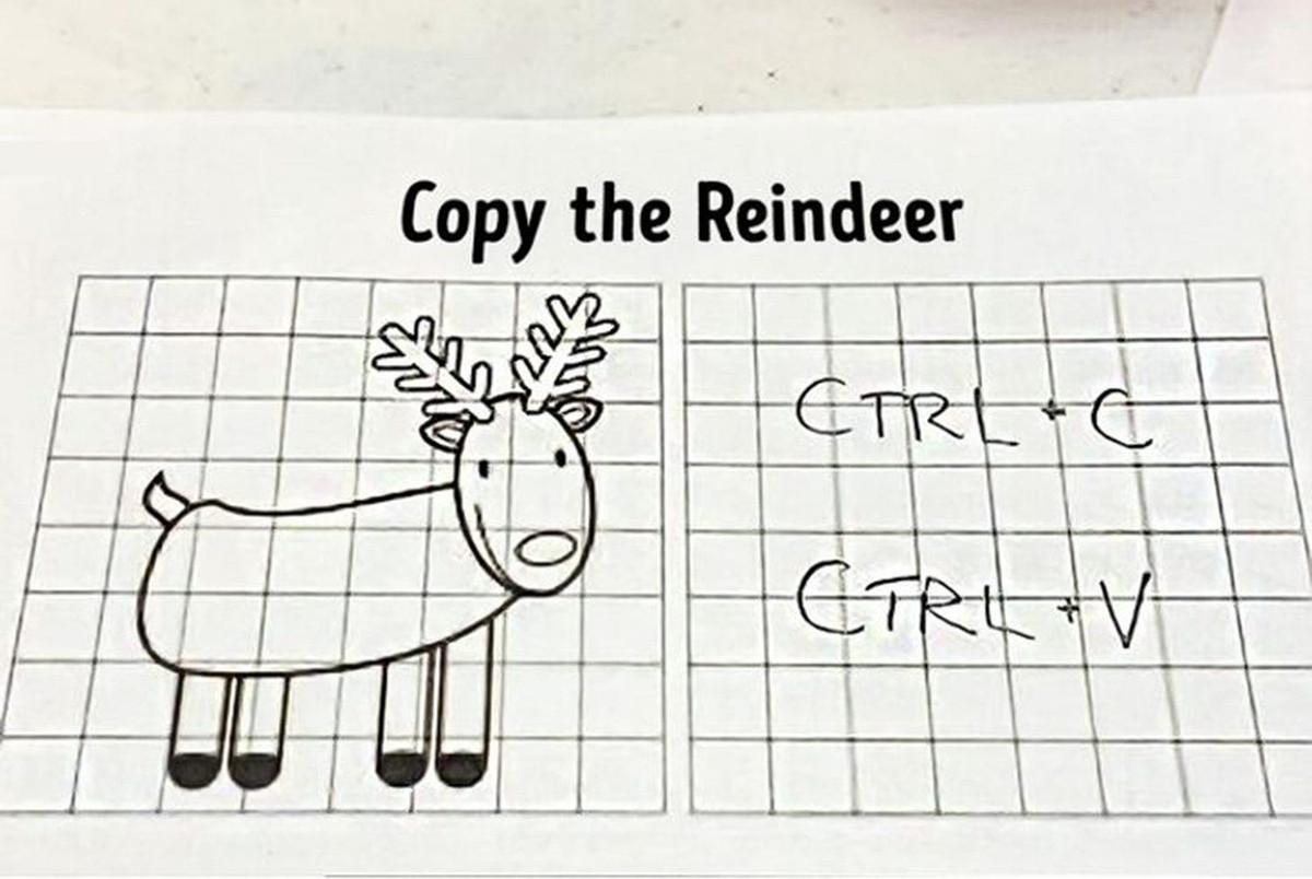 Đề bài yêu cầu copy (vẽ lại) chú tuần lộc, trẻ thời công nghệ đưa ra đáp án nhanh như chớp.