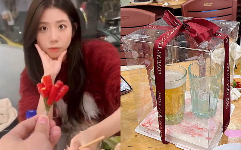 Thật can đảm khi tặng nàng bó hoa cay xè này. (Ảnh: Tiktok/@lian282013)