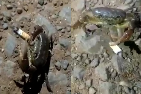Bật cười xem chú cua dùng càng kẹp điếu thuốc đúng kiểu dân chơi