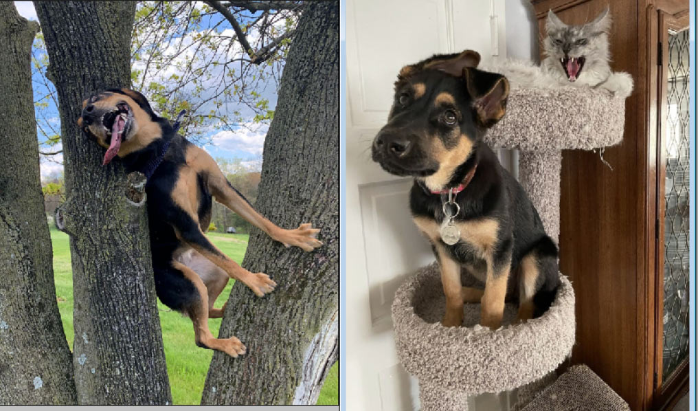 Do được nuôi cùng với 2 chú mèo nên chú chó pitbull 2,5 tuổi này thường có các hành động leo trèo trên cao.