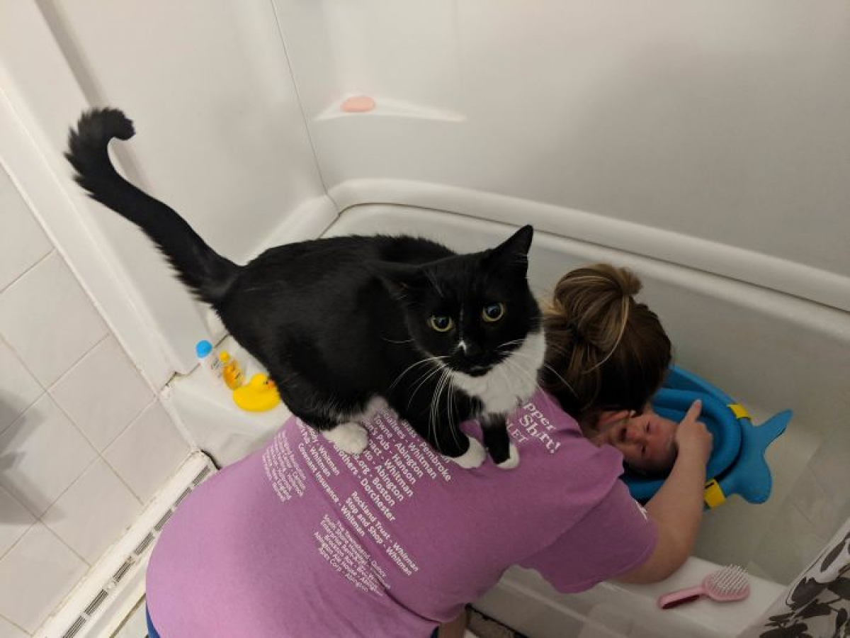 Mèo ta cũng muốn tắm.