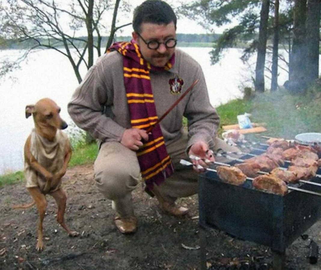 Biểu cảm và hành động của chú chó giống hệt bức ảnh.