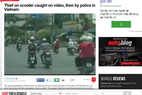 | Vụ bắt một tên cướp đồ trên đường nhờ camera hành trình tại TP HCM đang là đề tài thu hút sự chú ý của nhiều chuyên trang xe nước ngoài. |