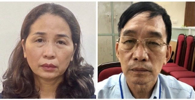 Bị can Vũ Ngọc Minh, Giám đốc Công ty Thẩm định giá Gia Lộc và bị can Hoàng Thị Thuý Nga. (Ảnh: Bộ Công an)
