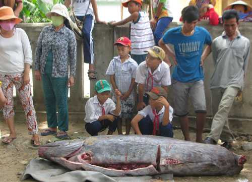 Gần hai ngày qua, người dân huyện Tuy An (Phú Yên) không khỏi bất ngờ khi lần đầu tiên bắt được một con cá lạ nặng hơn 200kg dạt bờ biển.