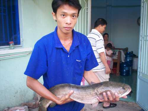 | Anh Tuấn với con cá lóc nặng gần 5kg |