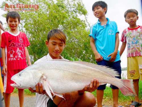 Ông Nguyễn Hữu Phước, 52 tuổi, ngụ xã Bình Mỹ (Châu Phú, An Giang) vừa giăng lưới bắt được cá sửu nặng hơn 6,1kg trên sông Hậu.