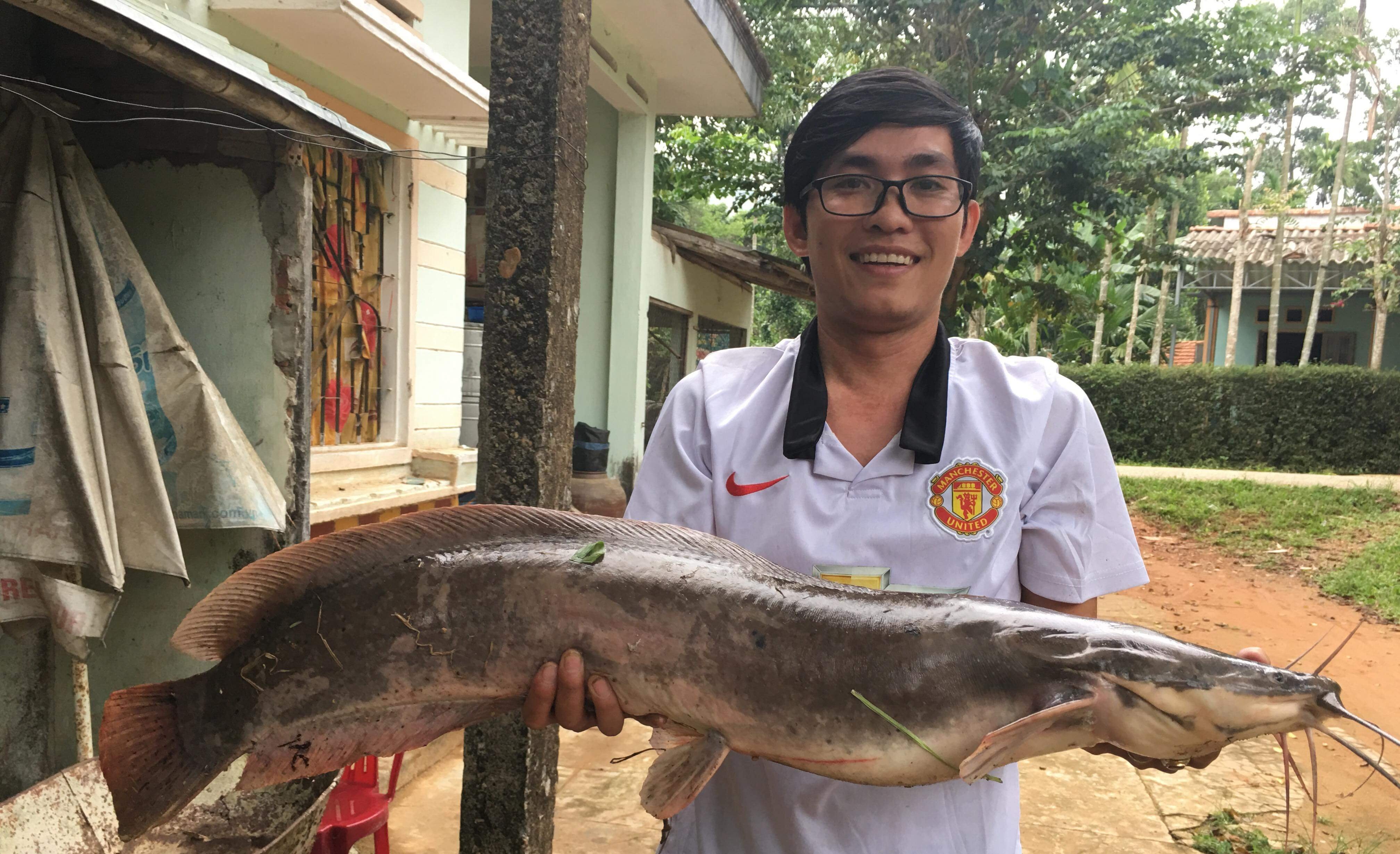 Ông Lễ dự định sẽ làm thịt con cá trê và chia cho bà con chòm xóm cùng ăn.