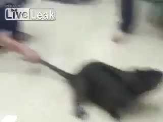 Đoạn clip quay tại Trung Quốc ghi lại cảnh người đàn ông đang túm đuôi con chuột khổng lồ, to ngang ngửa một chú chó con.