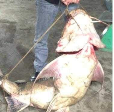 | Chú cá chiên to như bình ga vừa bị bắt |