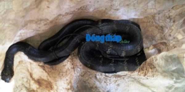 Ngày 10.10, lực lượng chức năng kiểm tra và xác định ban đầu đây là rắn hổ mang chúa (con gọi là rắn hổ mây) là loài động vật hoang dã quý hiếm cần được bảo vệ. Toàn thân rắn có màu đen khoang vàng, vẩy ánh bạc xanh, dưới lường màu vàng.