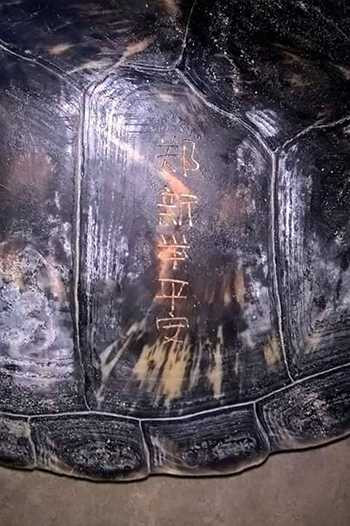 Về các ký tự được khắc trên mai rùa, một nhà ngôn ngữ học cho hay phiên âm Hán Việt là “Trịnh tân cử bình an”, có thể hiểu là một người họ Trịnh bắt được rùa biển, khắc chữ vào mai rùa rồi phóng sinh nhằm cầu may mắn, bình an, thuận lợi.