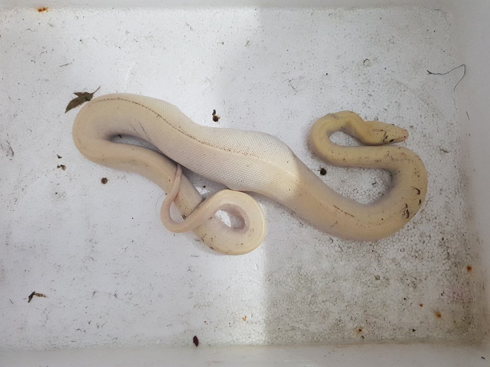 Một cán bộ kiểm lâm cho biết, đây có thể là trăn bạch tạng, bị đột biến gen.