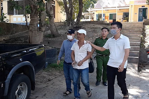 Vi Văn Thảo (đội mũ trắng) bị khống chế, bắt giữ.