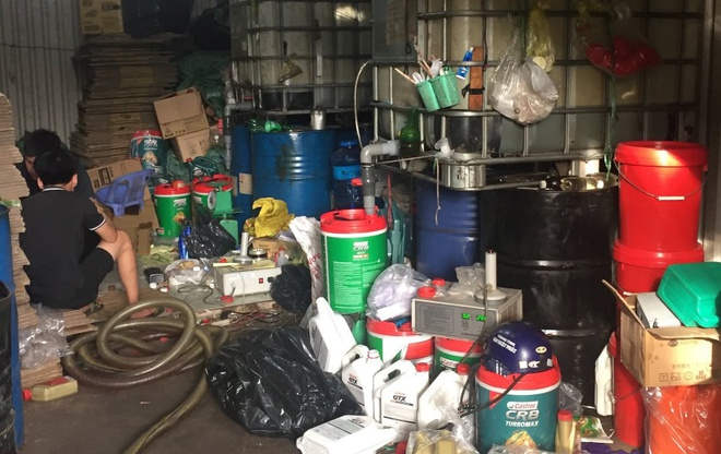 Để sản xuất nhớt giả, Khiến mua nhớt nguyên liệu của một công ty trên đường Huỳnh Văn Nghệ, quận Gò Vấp. Sau đó, bị can này thuê người san chiết vào can, chai.