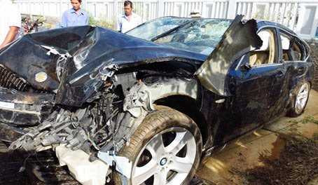 | Chiếc ô tô BMW do CSGT Tuân điều khiển bị hư hỏng nặng |