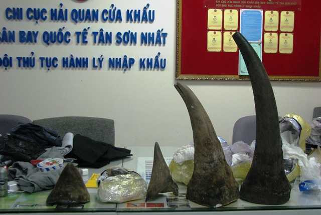 Chi cục Hải quan sân bay quốc tế Tân Sơn Nhất qua kiểm tra hành lý một người đàn ông đã thu giữ 13kg sừng tê giác được nhập lậu từ Châu Phi vào Việt Nam bằng đường hàng không.