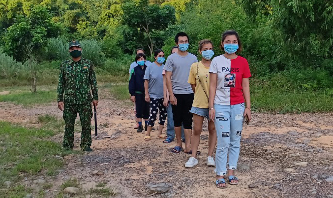 Đội tuần tra lập biên bản với 8 người trên để làm căn cứ xử lý, sau đó đưa vào khu cách ly phòng dịch COVID-19 tại phường Bình Ngọc (TP Móng Cái).